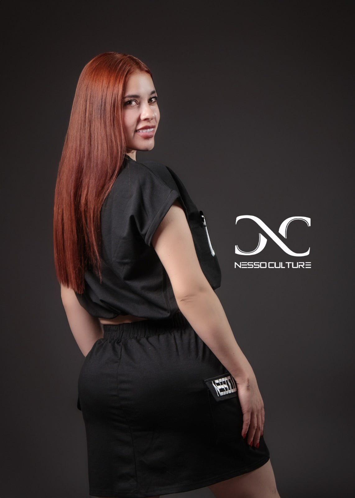 Este set es de dos piezas, Top con cordon a la cintura ajustable Y Skurt con bolsa Cargo para un Look Mas Urbano.